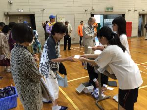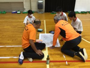 9月20日(土)の土曜授業において、地域の方をお招きしてDIG訓練(災害図上訓練)を行いました。校区の地域ごとに分かれてグループを作り、その地域にお住まいの方と共に活動しました。大きく1つめの活動は、自分の住んでいる地域の危険個所や公共施設、避難場所などをシールで色分けしたり、色ペンで記したりして、見やすい地図を作成することができました。また、学校から大雨などで急に帰ることになった場合、どのルートを通ると安全かを確認することができました。2つめの活動では、家庭内DIG訓練として、部屋の間取り図を描き、転倒しそうな物や窓ガラスが飛散しそうな場所に赤い印をつけ、どの経路で屋外に避難するとよいかを地域の方とともに考え合う活動をしました。地域の方から昔話や、実際に災害に遭った時の様子を聞き、充実した時間を過ごすことかできました。また、NHKの取材を受け、当日のテレビでも紹介されました。多くの地域の方々に参加していただき、ありがとうございました。