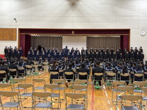 11月26日(水)、審査員に芥見東小学校の種田校長先生をお招きし、『文化祭』を開催しました。学年や学級目標のこと、これまでの取組や歩みを語ってから、合唱を披露しました。すべての発表後、種田校長先生から温かい講評をいただきました。各学年の優秀賞には、1年2組、2年2組、3年1組が選ばれました。どの学級も、見事な合唱を披露することができ、心が豊かになる時間を過ごすことができました。