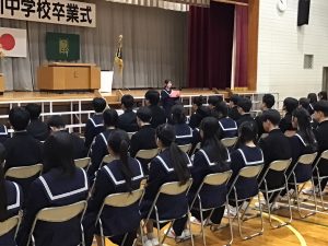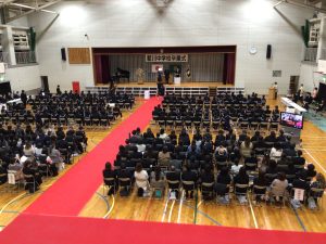 3月6日(金)、卒業証書授与式を挙行しました。多くの来賓の方に出席していただく中、式は厳粛な雰囲気の中で進められました。卒業証書を受け取るときの「はい!」という大きな声、堂々とした動きの中に、3年間の頑張りが表れていました。最後には、3年間の集大成として迫力のある学年合唱が会場に響き渡りました。温かい雰囲気が漂う中、会は閉じました。3年生の皆さん、卒業おめでとうございます。これからの皆さんの活躍を期待しています。