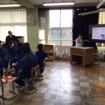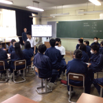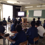 視察者の皆さんを対象に、校長が学校経営の全体構想について話をさせていただいています。