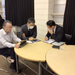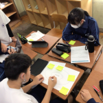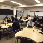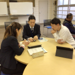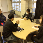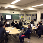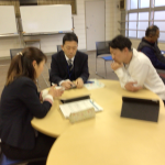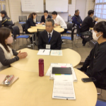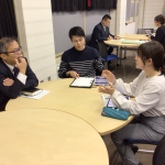 視察者の方が職員研修に参加されることもあり、グループを組んで本校の教員から授業改革と異年齢学級の学びについて説明し、視察者から感想や質問で対話する研修を行いました。