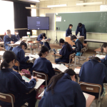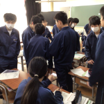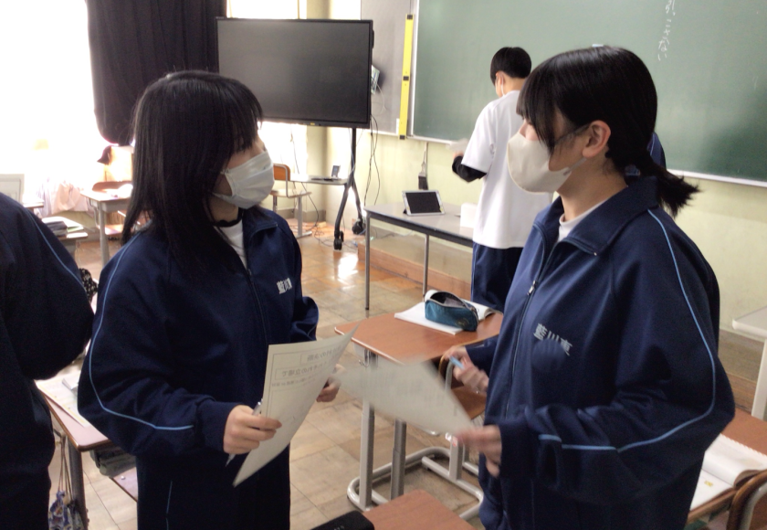 大きく2つの意見が出てきたのですが、話し合いは、論破しようときつい言葉で言い合うわけではなく、2つの意見を融合してみんなが納得する意見を出す生徒がたくさんいました。2年生が、これまでの対話の中で、「誰もが幸せになる」という本校のスピリットを大切にしながら学んできた成果だと感じました。