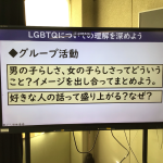 生徒たちは、既に「違いは当たり前」という大前提をしっかりと身に付けており、性的少数者の幸せや困り度、周りの人の考え方や対応について話題にしていました。