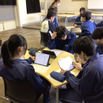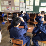 3年生の教室からは、美しい歌声が!財産発表会の練習をしていました。