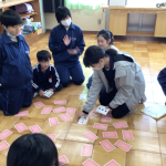 そこで、スタートする前に、小中学生が互いを知り合う機会として、小中ふれあい活動を月に1回展開しています。