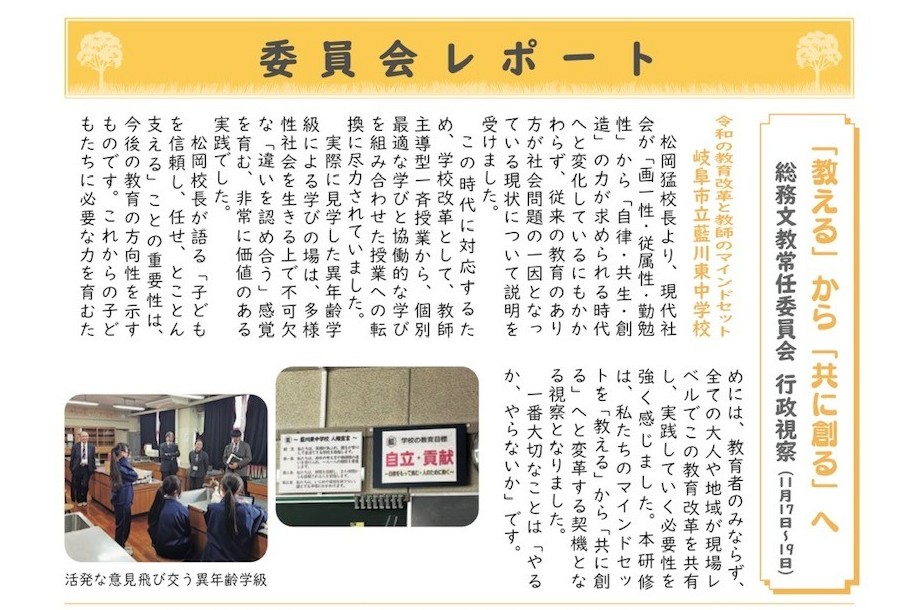本年度、教育視察のためにご来校いただいた佐賀県基山町議会の皆様が、本校での学びの様子や取組についての視察レポートを議会だよりに掲載してくださいました。