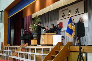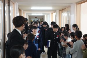 退場では、在校生がつくった花道を歩き、拍手に包まれながら握手や抱擁で別れを惜しみました。第一期生となる30人は、立派に藍川北学園を巣立っていきました。