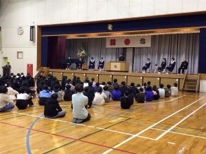 7つの役職に7・8年生から計9人が立候補し、来年度の藍川北学園をどのようにしていきたいかを、5~8年生の前で堂々と語りました。