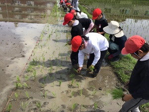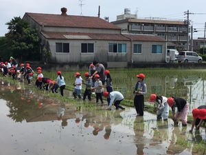 5年生が田植えをする「学習田」は、地域の方からお借りしています。