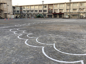 前日には、空撮の撮影スタッフさんがおひとりで来校され、地上図を描かれました。