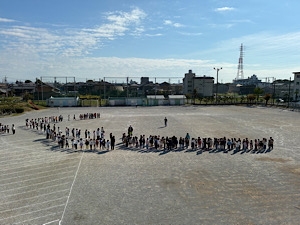 2時間目終了後、低学年から順に運動場へ集まってきました。