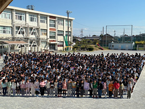 全校児童、教職員が並び終わった10時25分、