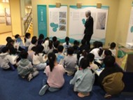子どもたちは、学芸員さんの話に驚きの声を上げながら資料に見入っていたり、
