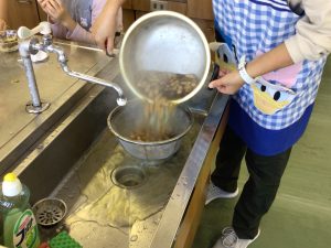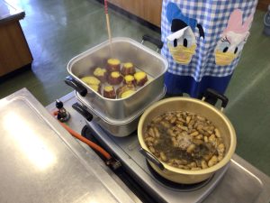 今日の5時間目は、昨日収穫した「落花生」と「さつまいも」をゆでてみんなで食べる会を行いました。