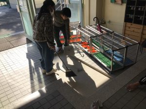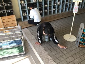 掃除の時間の様子です。南舎1階の児童玄関や廊下掃除の6年生の姿です。学校の4つの自慢の1つである「掃除」を体現しています。隅々まで雑巾がけをする姿や、はき残しがないように丁寧にほうきで掃く姿がありました。必要なこと以外は大きな声も聞こえません。 下級生の良いお手本になっています。ありがとうございます。