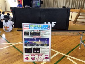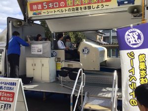 3、4時間目に6年生がシートベルトの効果を体験を通して学びました。まずは、映像で後部座席にシートベルトをしていない状態で時速40キロでぶつかった場合、どのようなことになるのか見せてもらいました。フロントガラスを突き破って飛んで行ってしまう姿や、前の座席の人にぶつかる様子、車外へ放り出されてしまう様子などが映し出され、子供たちはびっくりしていました。話を聞いた後は、体験車に3~4名ずつ座り、シートベルトを正しくしめ、時速5キロでぶつかる衝撃を体験しました。時速5キロでも結構な衝撃を感じたので、時速50キロでぶつかったときの衝撃はこの100倍だということを聞き、子供たちは大変驚いていました。体験後は、シートベルトの大切さを十分感じたようで、「これからは、後部座席でもシートベルトをしようと思います」という感想を話してくれました。また、今日学んだシートベルトの大切さを、必ずお家の方にも伝えてほしいと思います。