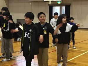 冬休みまであと2日!という今日、5年生が体育館でお楽しみ会を行っていました。