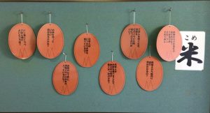 子供たちが給食に興味をもつことができるよう、とても工夫された掲示です。学校給食週間が終わっても、給食を食べることができる幸せを感じながら、調理してくださる調理員さんに、そして、命をいただいている食べ物に感謝して毎日の給食をいただきたいですね。