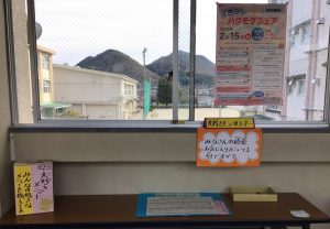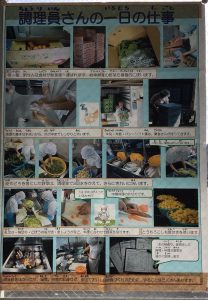給食週間に合わせて2階の渡り廊下には、給食に関する掲示がたくさんあります。