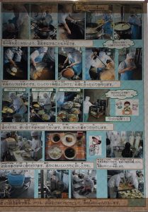給食期間中の献立を紹介しています。この献立の料理を調理してくださる調理員さん方のお仕事の様子の紹介です。いくつもの作業過程を経て給食が出来上がっている様子が伝わります。残さず、食べられるようにしたいですね。