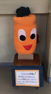 「にんじん神様」です。優しくさわると苦手な食べ物も食べられるようになるとか!優しく頭をなでている子もいました。
