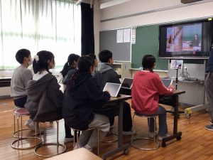 藍川中学校、岩小学校、芥見小学校の3校の生徒会、児童会のメンバーでオンラインで交流会を行いました。10月1日に行ってから2回目の交流会になります。お互いの学校がいじめについて考え、どのような取り組みをしているかを発表しました。