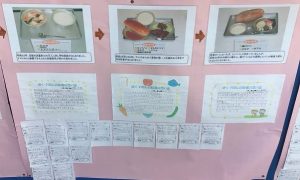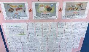給食週間は終わりましたが、渡り廊下に「給食の歴史」の掲示を見つけました。