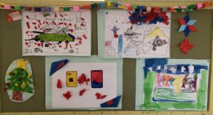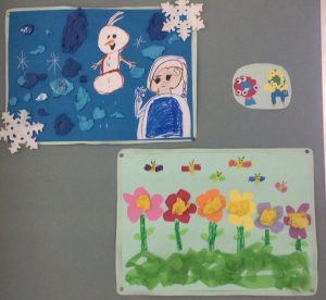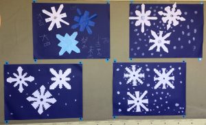 いろいろな表情の個性豊かな鬼や、いろいろな形や色の結晶が私たちを迎えてくれます。ふれあい教育展に出品した作品も一人一人が描きたいことがとてもしっかりとひょげんされています。見ていると、いろいろな発見があってたのしいです。