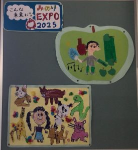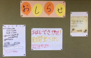 みのり学級の廊下には、季節を感じる掲示があります。また、これまでに作成し、ふれあい教育展に出品した作品も掲示しています。