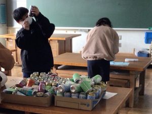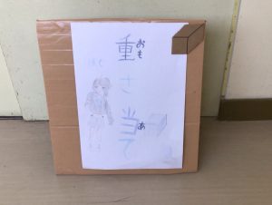 その準備が着々と進んでいます。少人数教室の廊下を通ると、「重さ当て」と書かれた看板を発見。中に入ってみると…。さて、どんなことをするのかな?他にも、何やら空き缶をたくさん抱えて図工室に入っていく6年生が数名。ここは、どんな遊びなのかな?