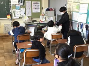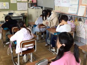今日の中休みは、なかよしグループに分かれ、6年生を送る会で6年生に渡す、メッセージを作成しました。5年生が中心になり、1~4年生へどんな内容のことを書くとよいかや、文章の例を示しながら、丁寧に声をかけている姿がありました。