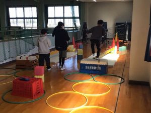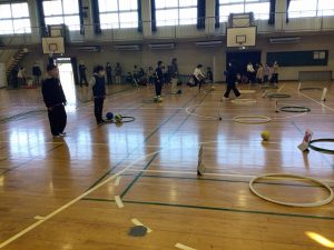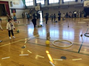 2時間目から休み時間をはさみ、3時間目の終わりまでたっぷりと時間をとりました。12の場所で12の遊びを思う存分楽しむことができました。子供たちの楽しそうな笑い声や応援する声、嬉しそうな笑顔がたくさんたくさん見られたとても素敵な会になりました。もちろん、子供たちだけでなく、先生たちも楽しみました!