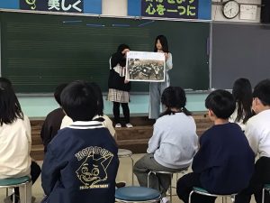 「芥見小学校について」では、昔の芥見小学校の場所や学習の様子、校舎の様子など写真などを使って上手に説明していました。