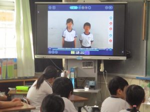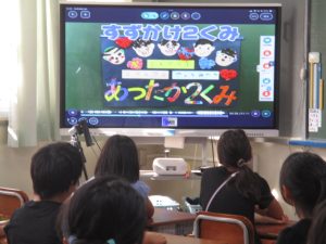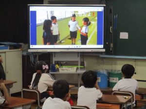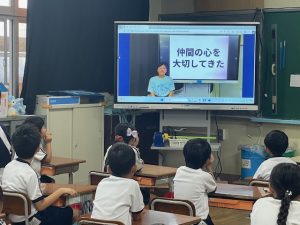 各学級の前期の宝物発表を動画におさめ、全校で視聴ししました。