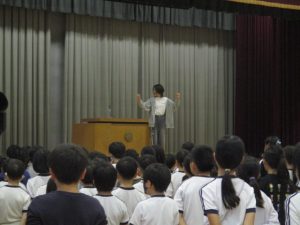秋休み明け、子どもたちの大きな声で歌う校歌からスタートです。