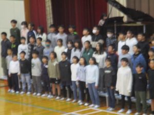 6年生が厚見中学校の合唱祭で歌声を披露しました。 毎朝、体育館に集まり練習してきましたが、 慣れない会場で、多くの人がいる中で緊張したと思います。 子どもたちは精一杯歌い、とても良い合唱でした。