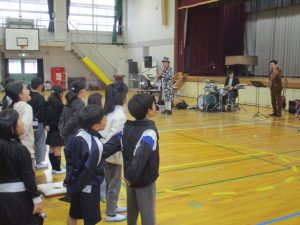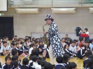 万照さんが、子どもたちの近くで演奏してくださり、サックスの音色や息遣い等を間近で体感できました。