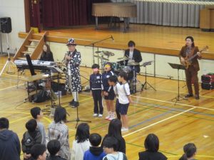 最後に、サックス、ドラム、ベース、キーボードの生演奏をバックに、校歌も歌いました。