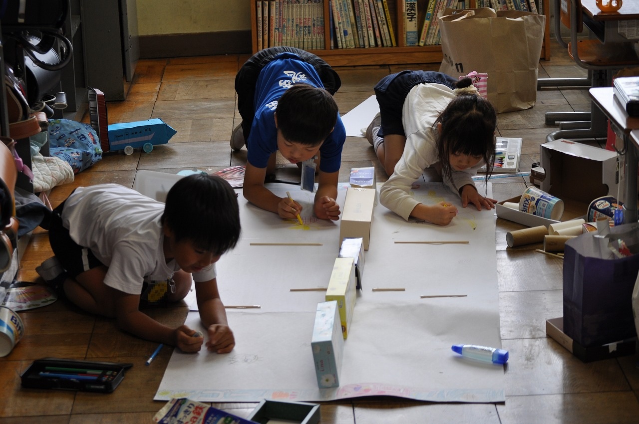 2年生は生活科でおもちゃづくりに励んでいます。仲間と協力して意欲的に取り組んでいました。
