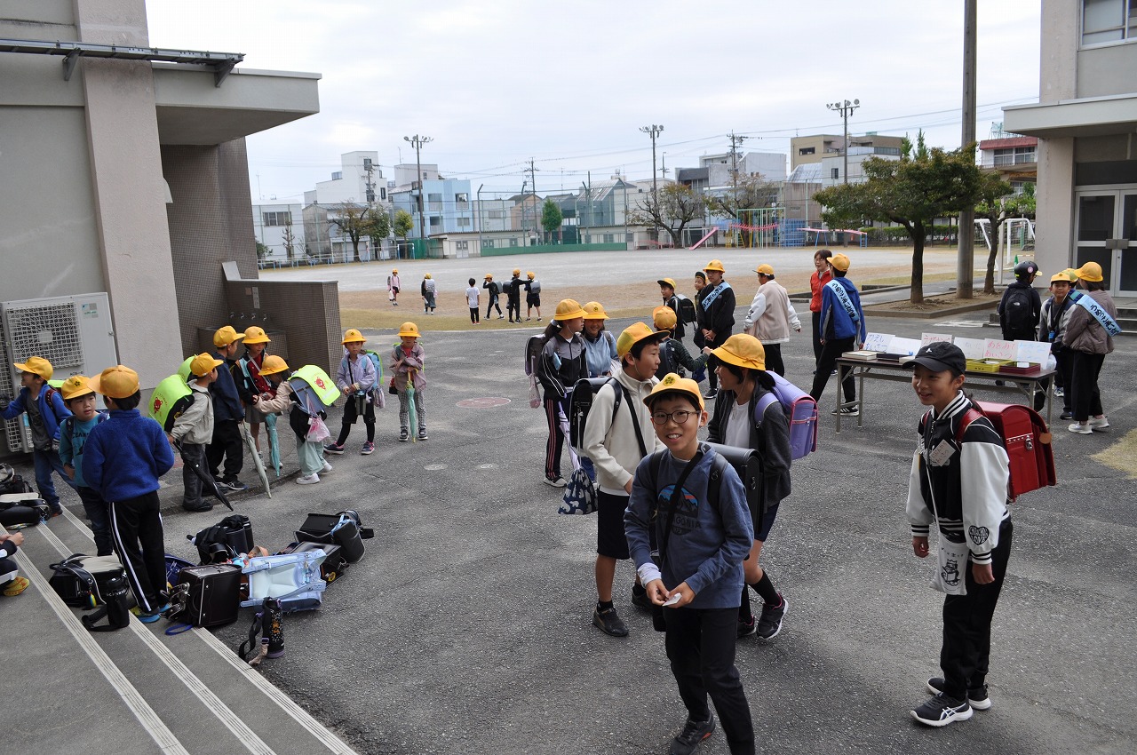 今日は5年生が岐阜車体に社会科見学です。電車を利用するため田神駅へ向かいます。岐阜車体の見学は長袖長ズボン、ヘルメットが必須です。忘れずに準備することができました。自動車工場の工夫をたくさん見つけてきてください。