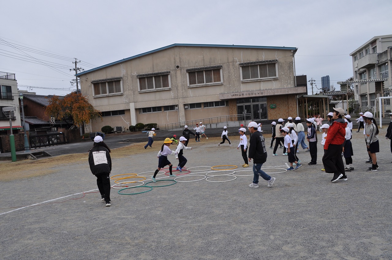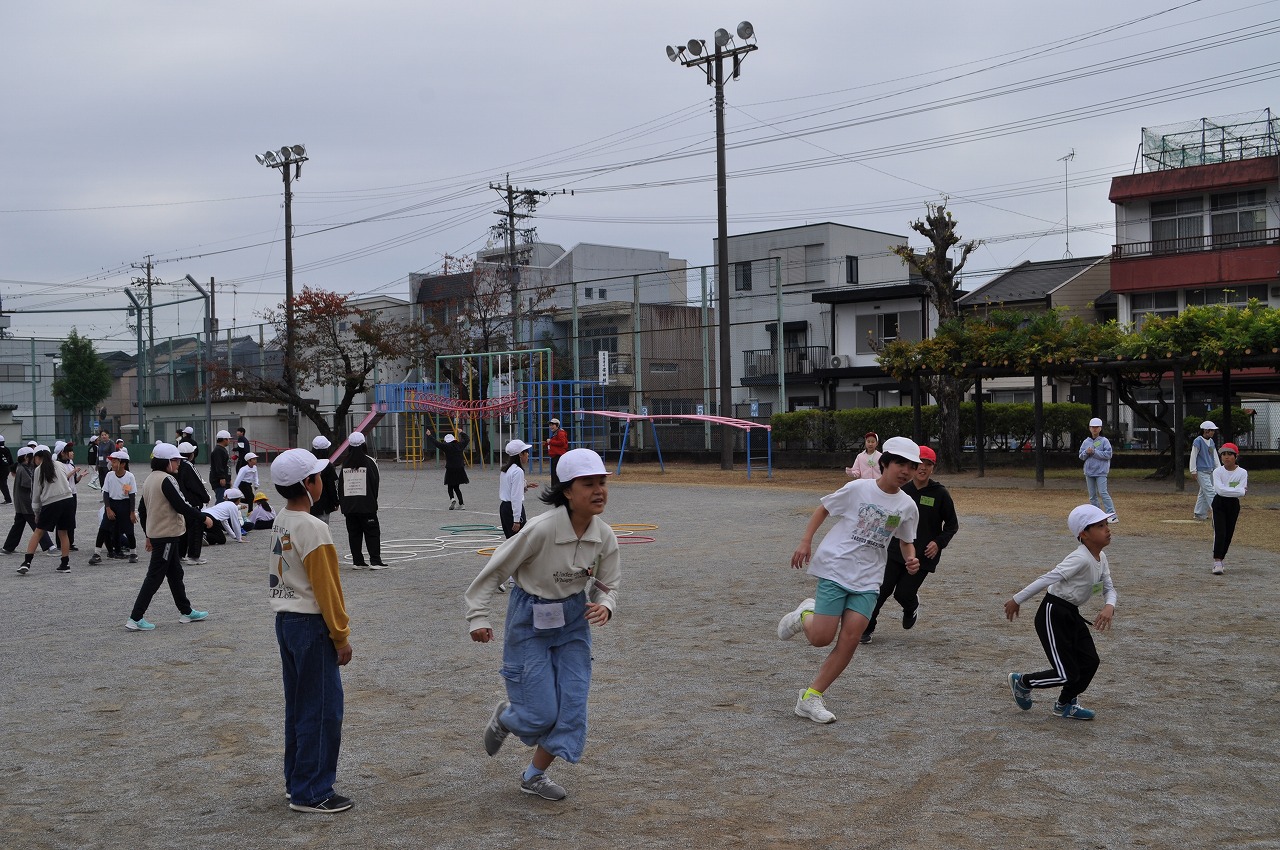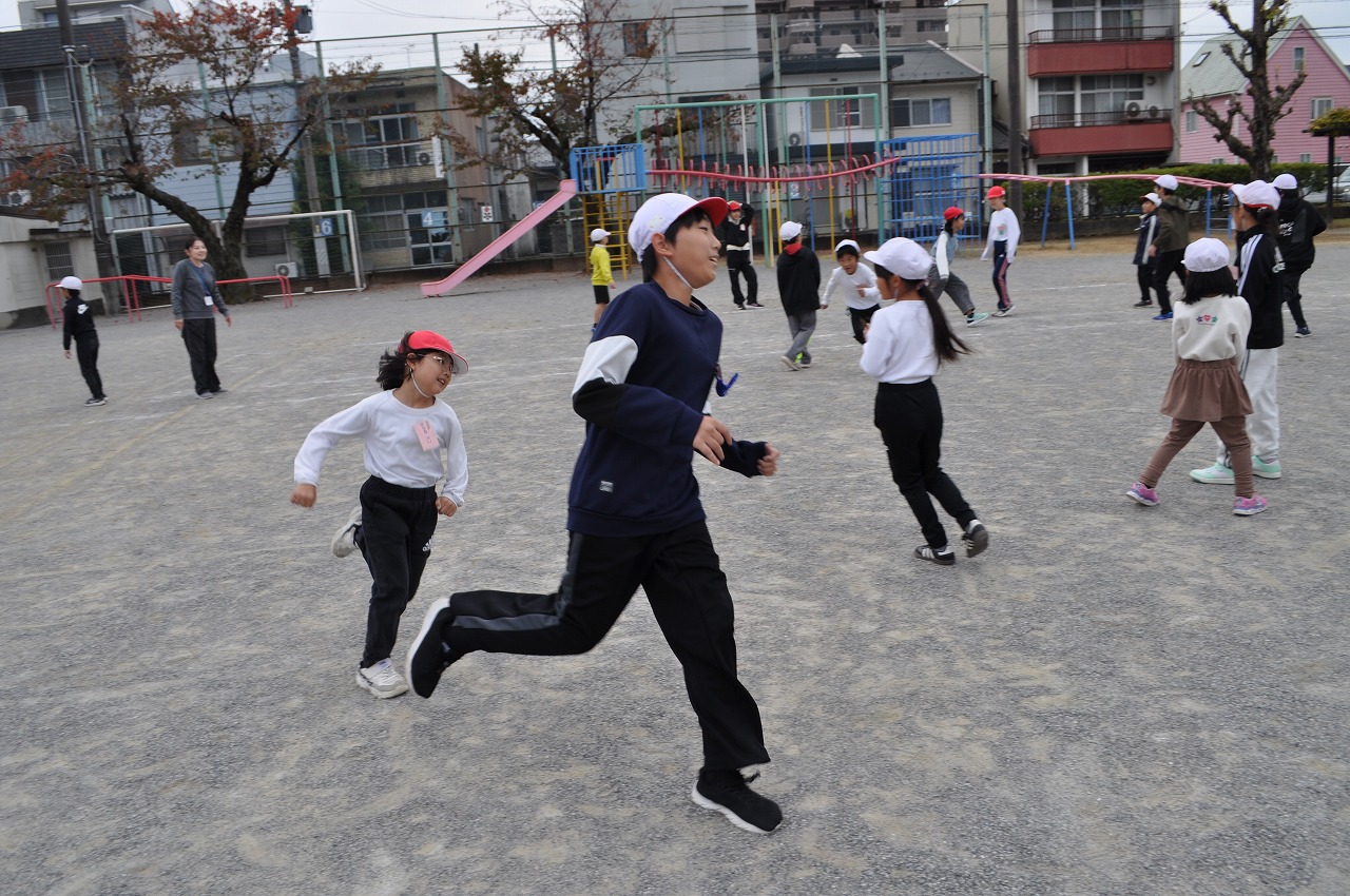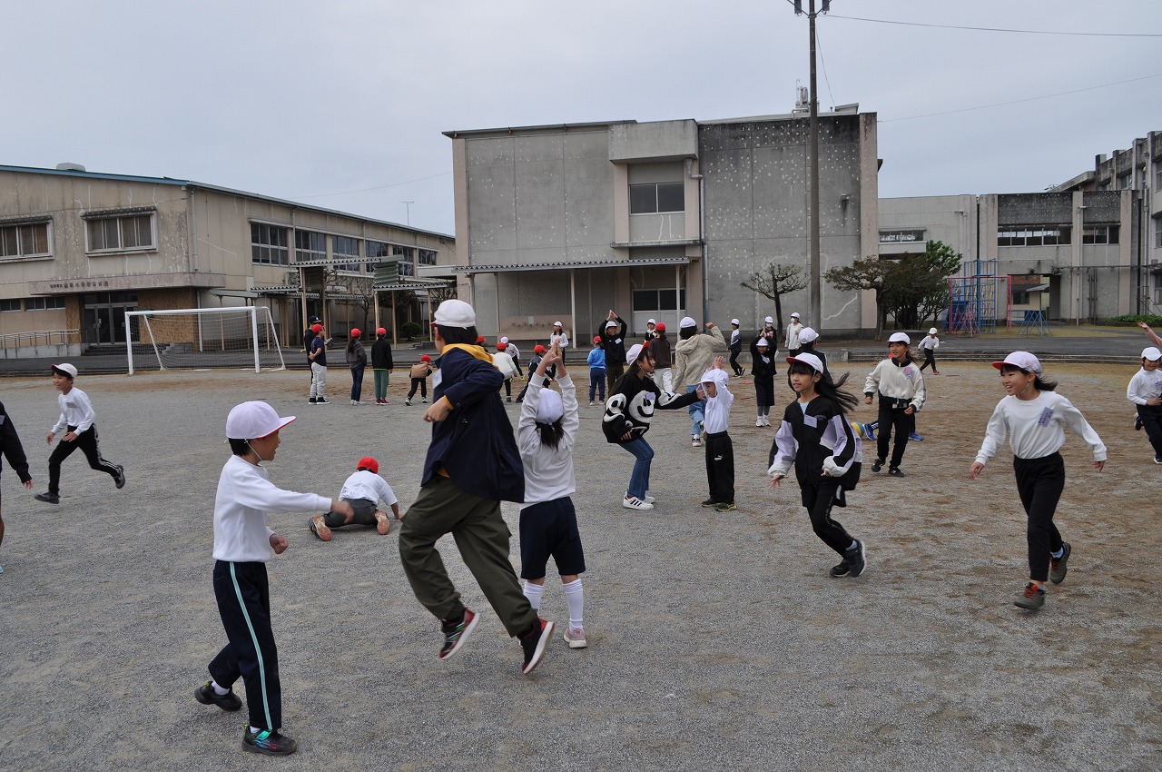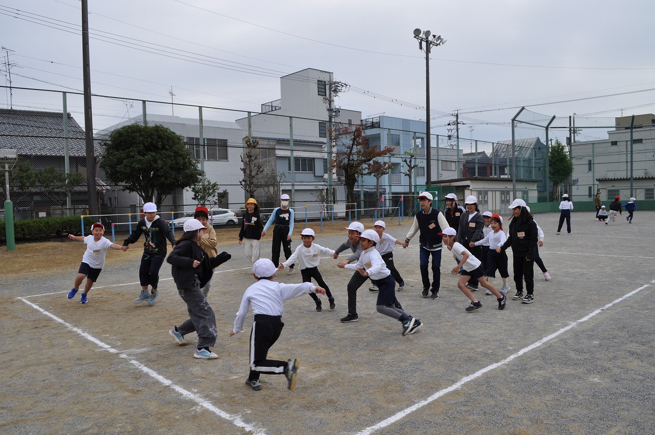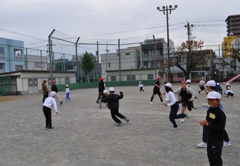 6年生のお兄さんを捕まえようと必死に追いかけます。