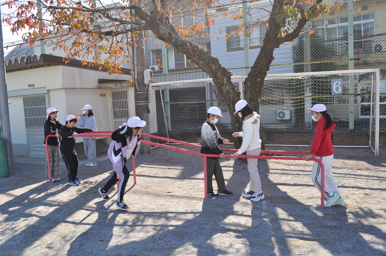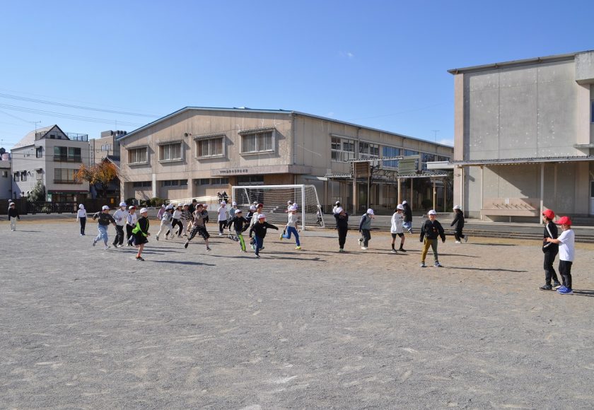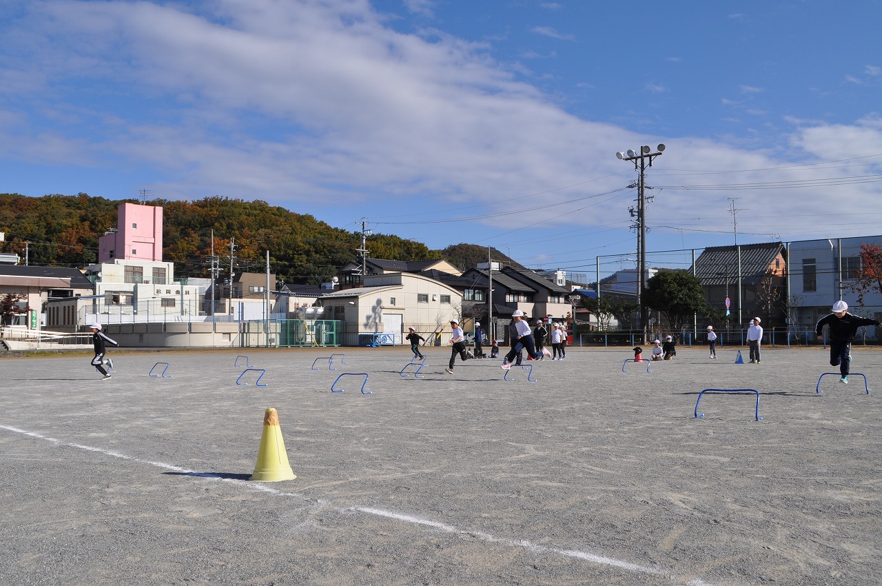 こちらも寒さに負けず、3年生は体育でミニハードルを跳び越して走っています。このミニハードルは地域の方のご厚意によりいただきました。ありがとうございました。