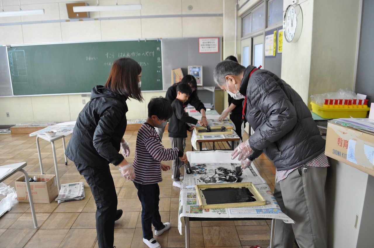 2年生は紙版画を刷る活動を行いました。ボランティアの方にも支援していただき、予定していた時間の中で出席した全員が紙に刷ることができました。ありがとうございました。