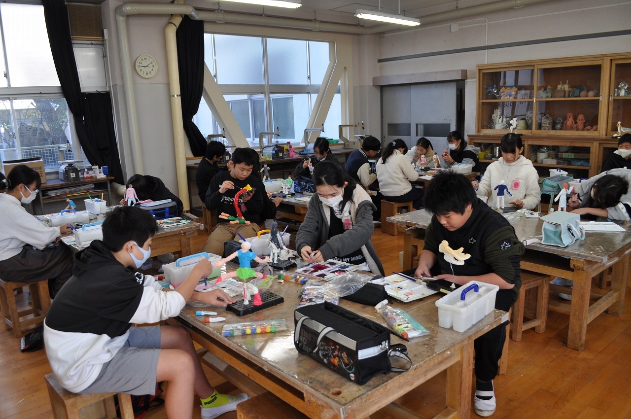 6年生図工「未来のわたし」。着色に入っています。思った以上に薄くなってしまうようで苦心していました。がんばれ!
