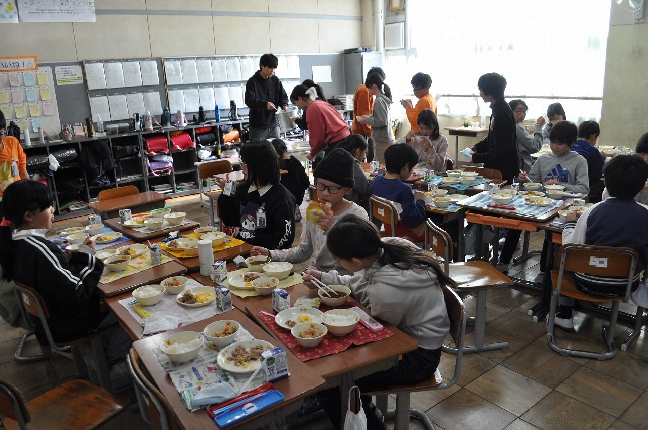 子どもたちの多くが今日のぎふみそ汁のダイコンがなかよし学級の収穫したものだと知っていました。学校で栽培したダイコンということもあり、いつもよりおいしくいただくことができました。全校でぎふみそ汁の残菜は0.5人分でした。ごちそうさまでした。