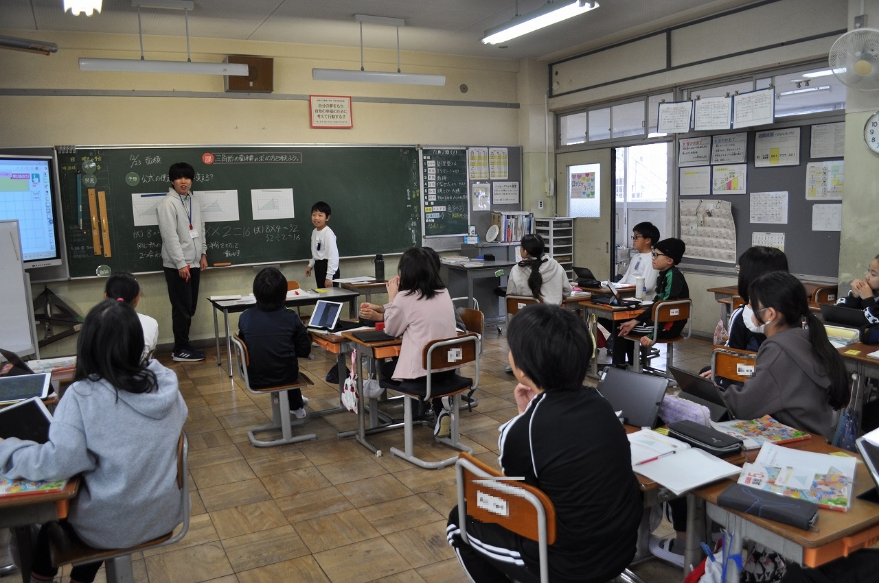 その5年生では、算数の研究授業が行われました。三角形の面積の求め方を考えました。