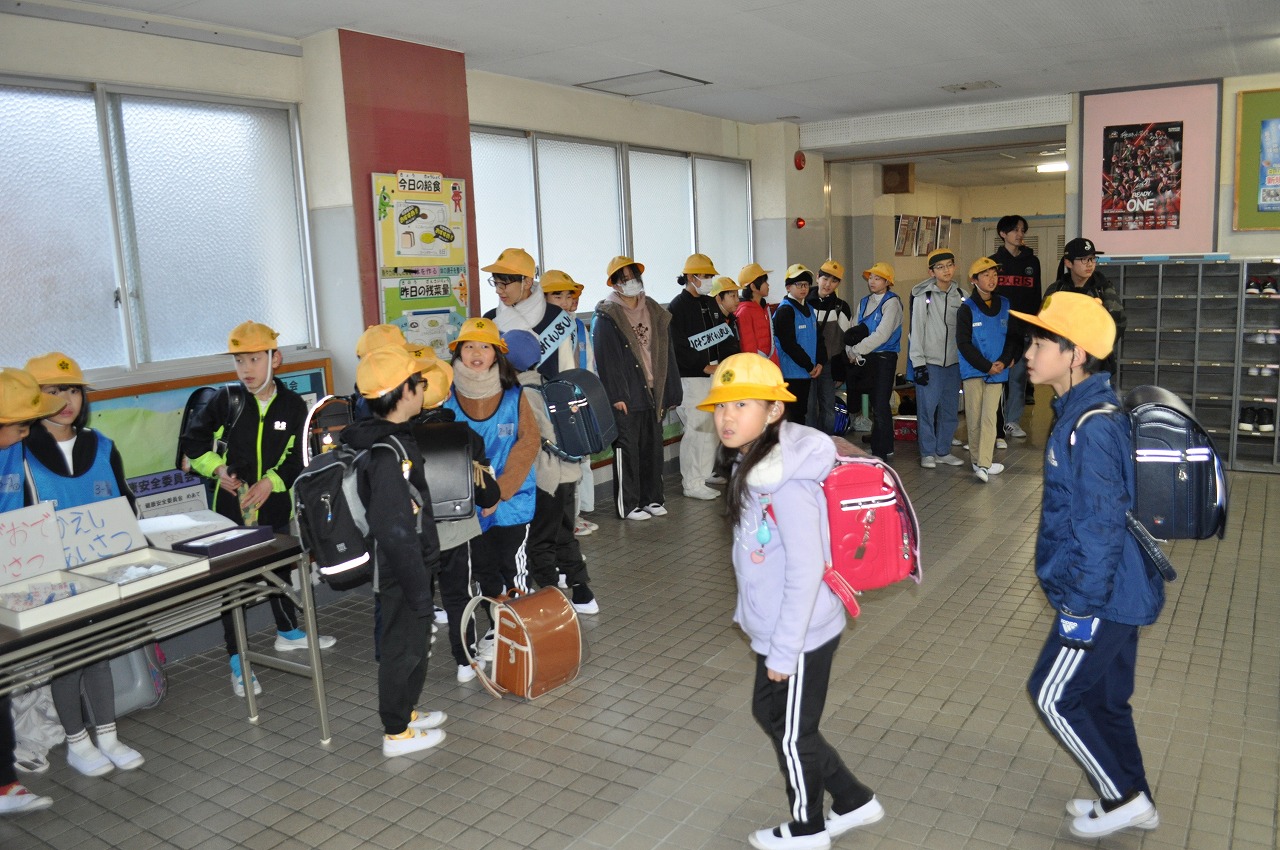 雨が降っていたこともあり、あいさつ運動は玄関内で実施しました。