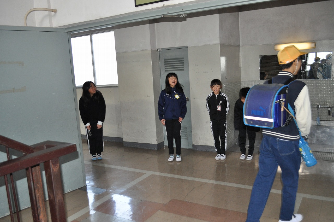 3年生の子たちは教室前の廊下で出会った人にスマイルあいさつを行っていました。自分たちであいさつの輪を広げようとする気持ちがいいですね。
