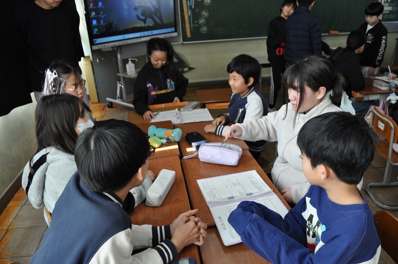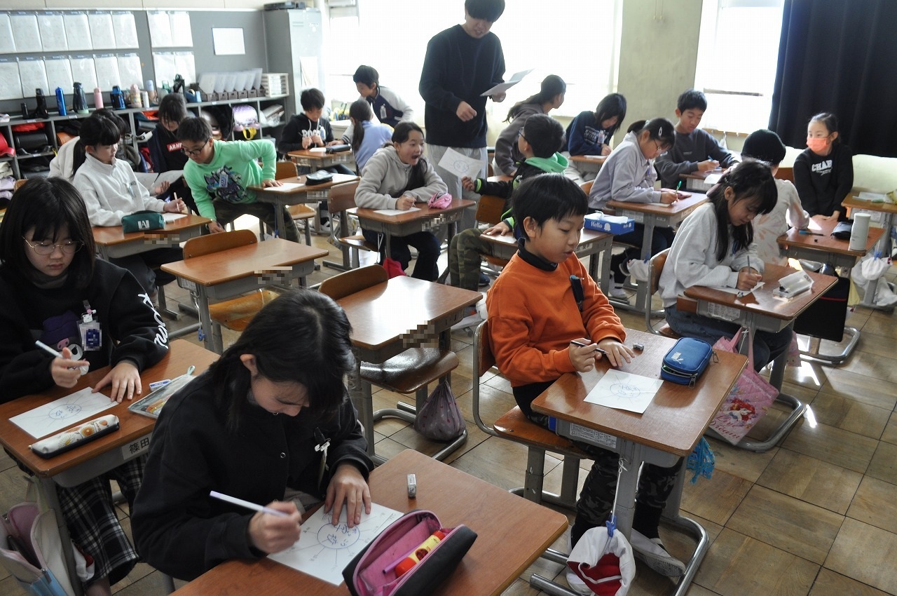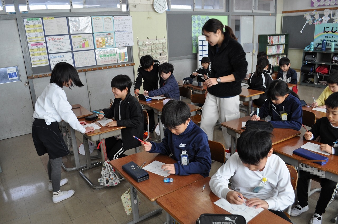 今日は、思っていることが仲間と同じだったり違ったりしていることを学びました。お題についてイメージしたものを単語や短い言葉で書いていきます。1年生は「冬休み」でイメージしたことを書きました。ひらがなを学習して書く量も多くなりました。