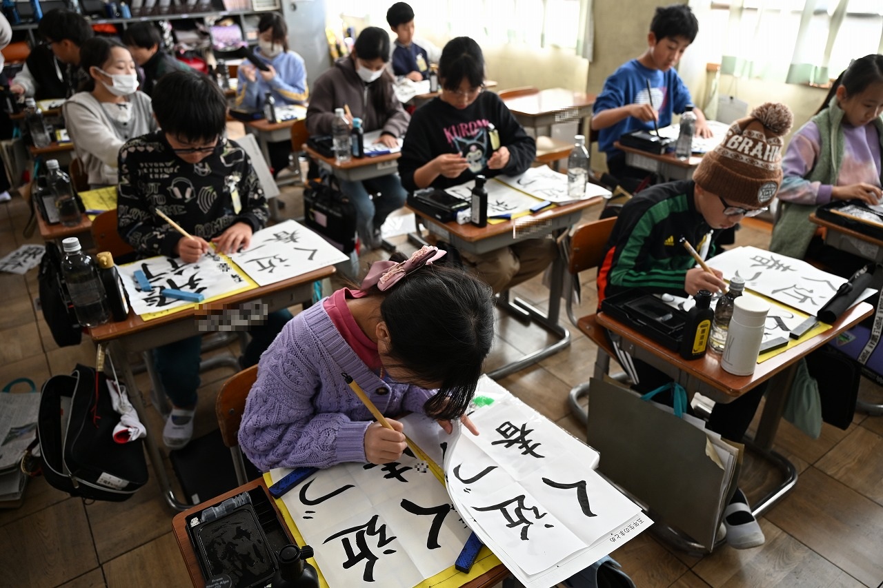 5年生書写。毛筆もこれが最後の課題です。季節感たっぷりの題材です。